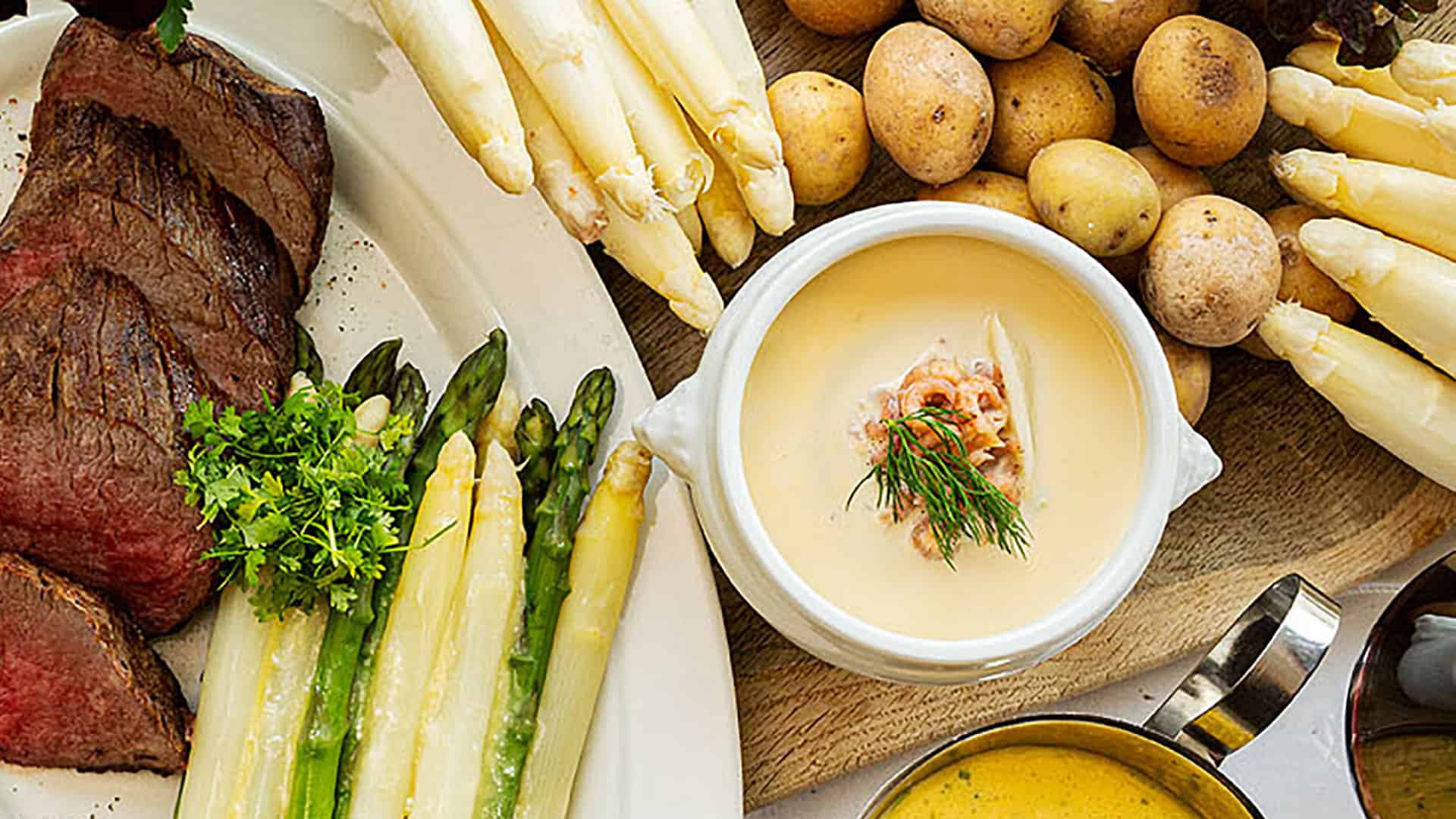 Asparagus lovers are now getting their money’s worth again. Feast your way through our asparagus menu and enjoy the “white gold” to your heart’s content. A refined four-course asparagus menu including corresponding wines awaits you if you order in advance.