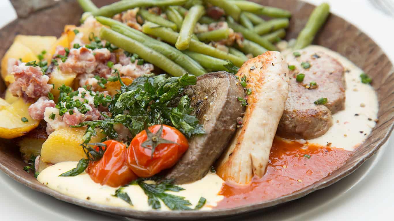 Warme Farben, eine elegant-rustikale Einrichtung und eine köstliche, durchgehend warme Küche mit regionalen, saisonalen und alpenländischen Köstlichkeiten. Die Mittagskarte wechselt täglich.