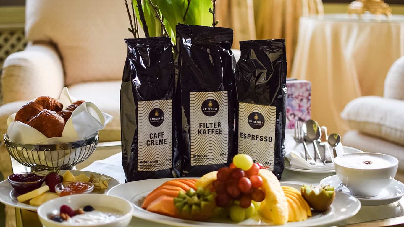 Das Frühstücksbuffet enthält ein Heißgetränk nach Wahl. Wir freuen uns Ihnen unseren hauseigenen Kaiserhof Kaffee, vollmundig und mit einer feinen Mandelnote versehen, anbieten zu können oder probieren Sie sich an unserer ausgewählten Palette an Tees von Ronnefeld. Von fruchtig bis herb ist für jeden Geschmack etwas dabei. Entdecken Sie Ihren Favoriten!
